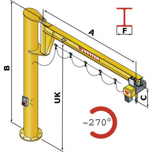 Vetter – ASSISTENT AS oszlopos forgódaru, elektromos láncos emelőművel, teherbírás 250 kg, kinyúlás 4 m